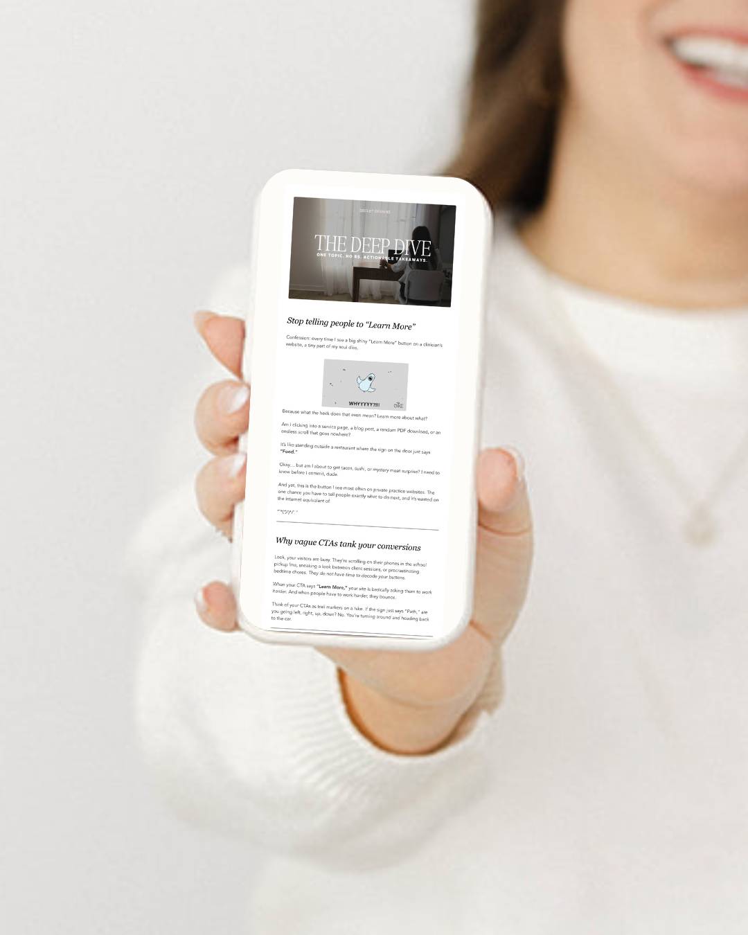 You'll get a bi-weekly dose of website tricks, branding tips, and SEO secrets tailored for weight-inclusive practices (without any of the boring stuff).